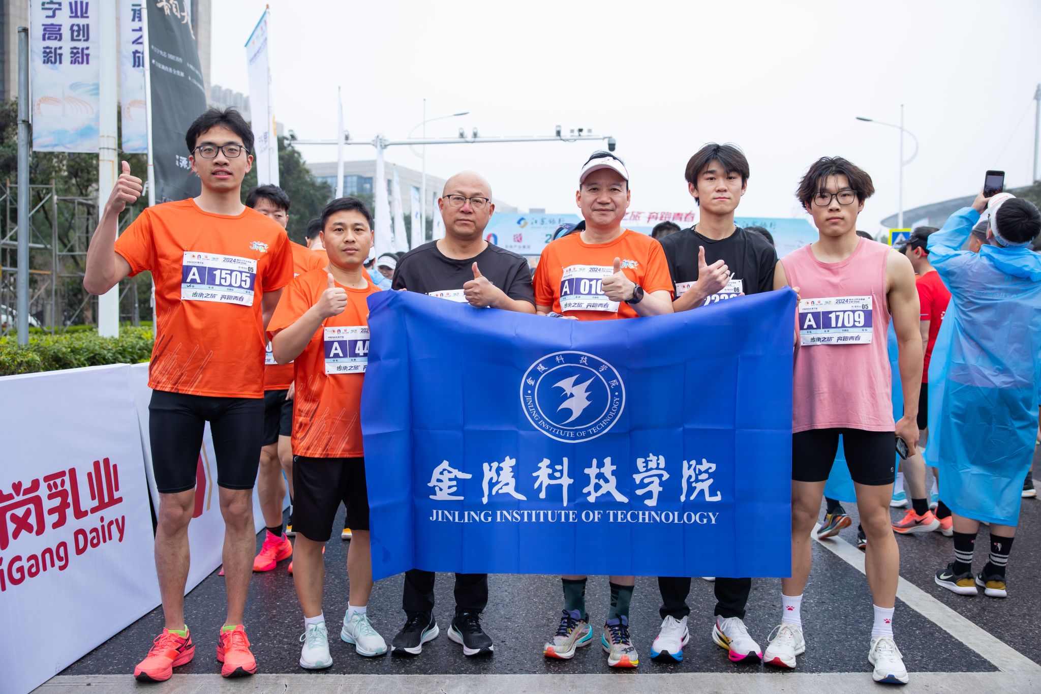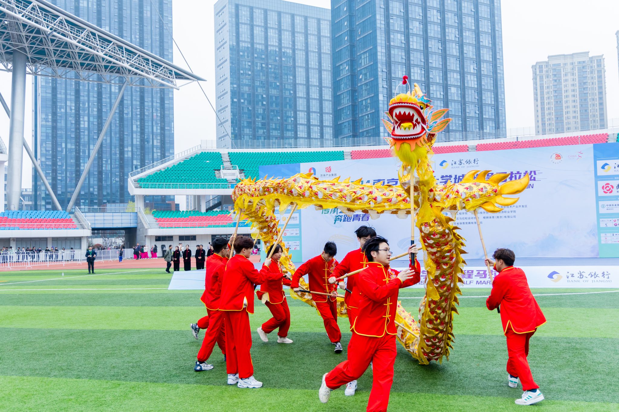 刘志远应邀为马拉松鸣枪,刘永彪带领数十名金科师生参加了半程马拉松和欢乐跑,300余名金科青年志愿者服务在赛事起终点和各补给点,74名医疗志愿者为跑友提供医疗保障,100余名校园安保人员和后勤工作人员参与赛段服务保障,动物科学与食品工程学院学生舞龙队在体育场为跑友加油助威,金科创客汇孵化项目在青春集市上展示了“三生令”文创产品。