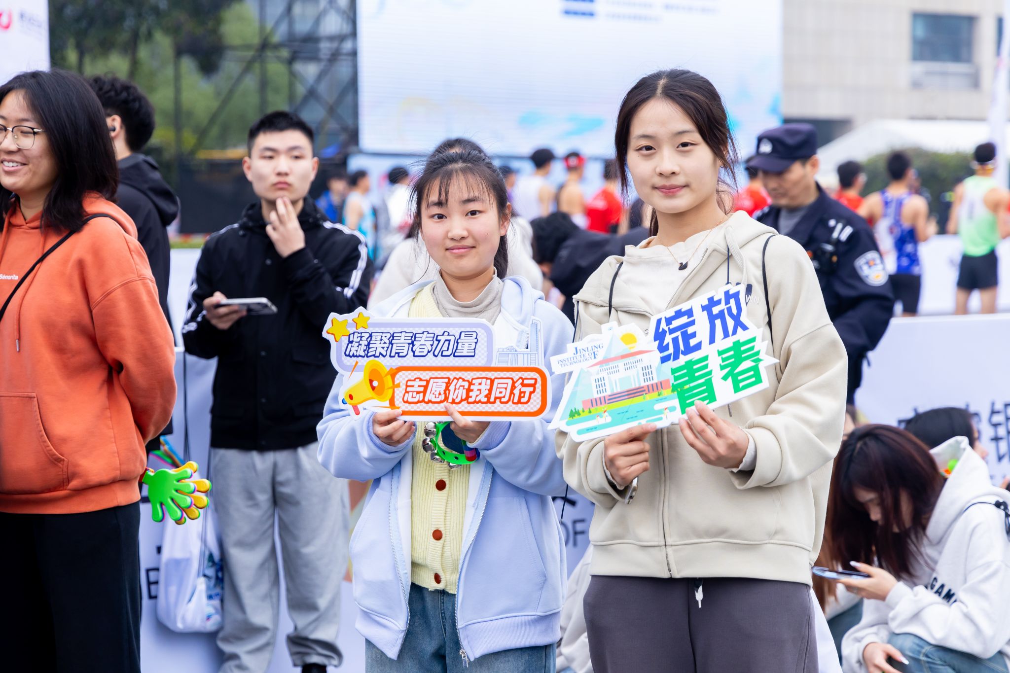 马拉松赛事起点的金科志愿者