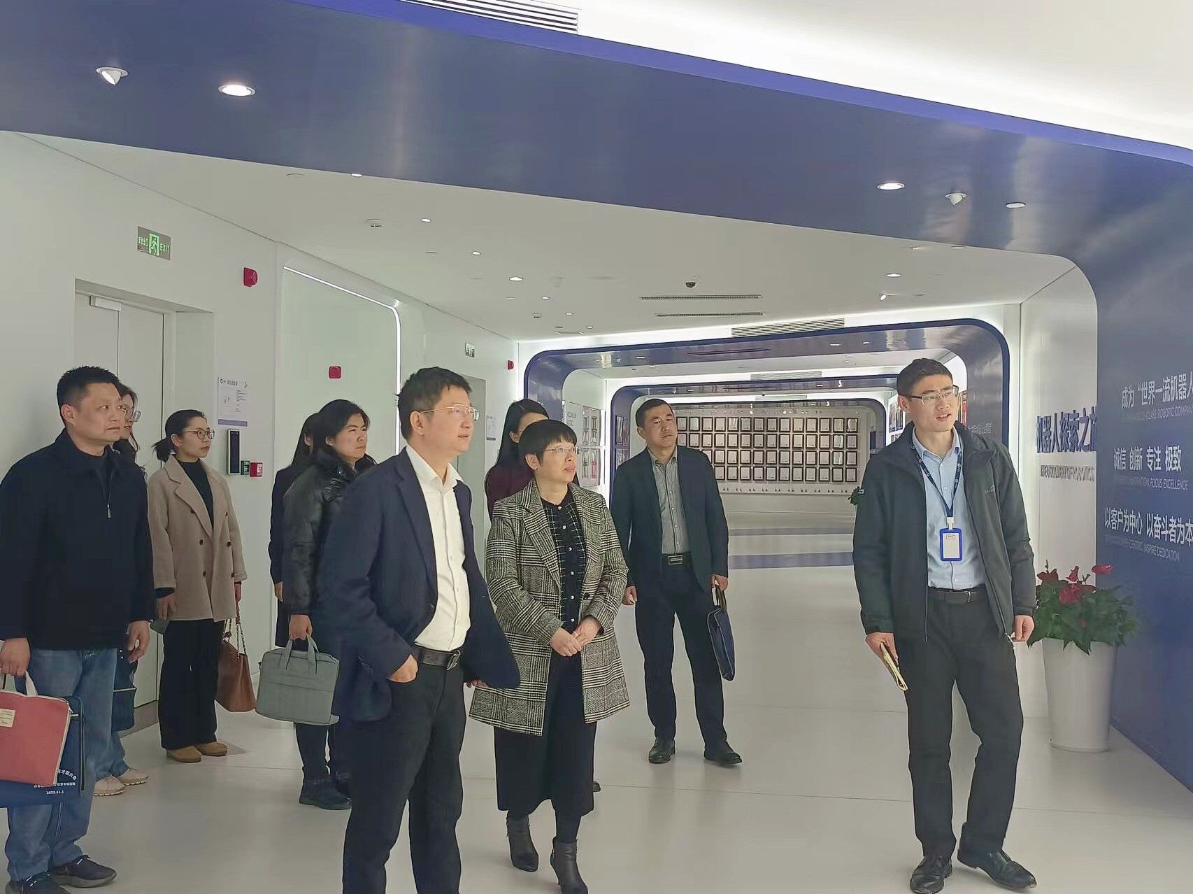 亿嘉和科技股份有限公司副总裁严宝祥对kaiyun官网一行的到来表示热烈欢迎,并带领大家参观了公司成果展厅,详细介绍了公司在电力、消防、清洁、医疗机器人等领域的产品研发及产业布局情况。