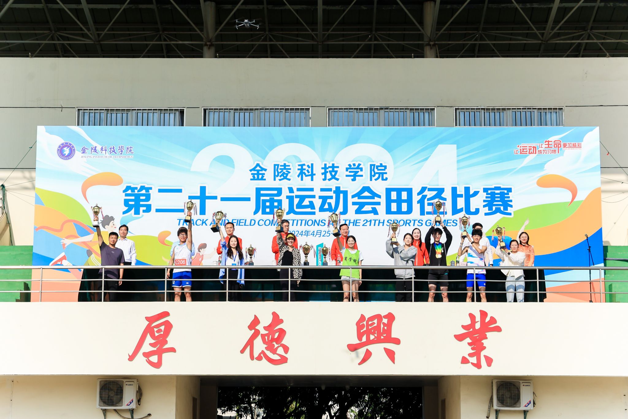 经过两天的激烈角逐,最终产生女子团体总分、男子团体总分、男女混合团体总分、教工团体比赛、学生广播操、体育道德风尚奖等奖项。在这片充满青春与活力的土地上,运动员们用汗水和拼搏书写了一段段精彩的篇章,为我们呈现了一场视觉与精神的盛宴。来自各学院的代表队们都展现出极高的竞技水平和精神风貌,他们在比赛中积极向上、勇往直前,激励着每一位金科学子无论面对何种困难和挑战,都能坚持到底、永不言败。