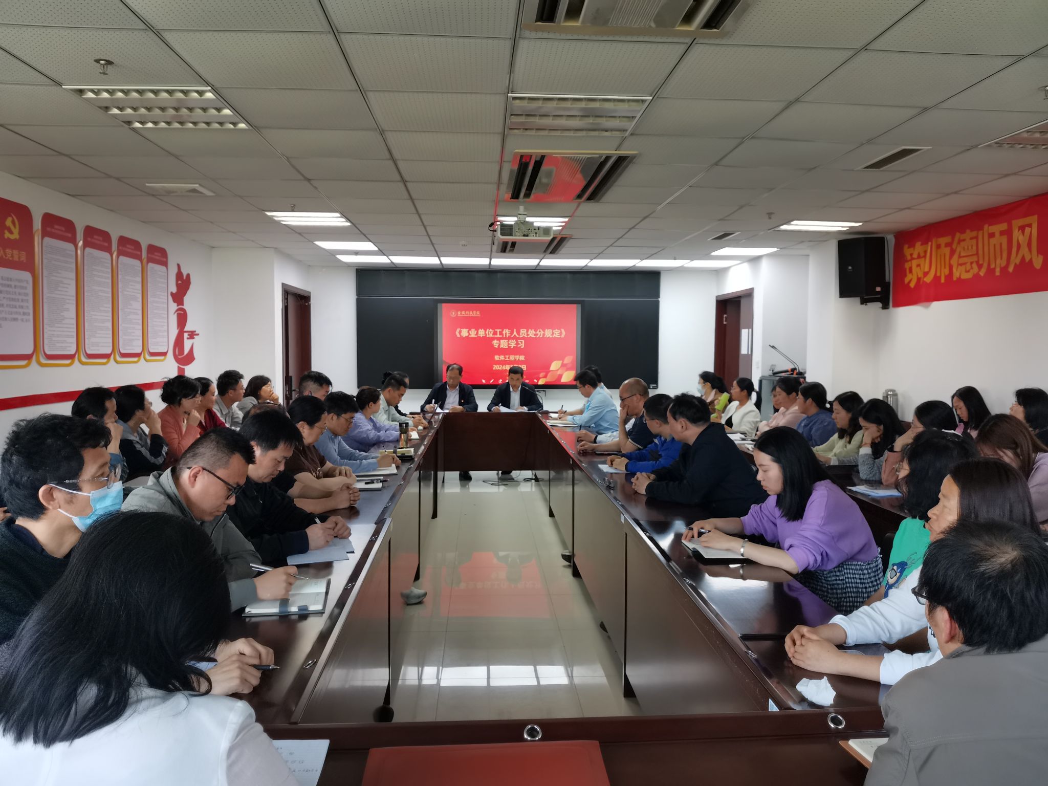 学习会上,广大教职工重点学习了《规定》中事业单位工作人员违反政治纪律、组织人事纪律、工作纪律、廉洁从业纪律、财经纪律、职业道德和社会公德等七个方面行为的处分规定。