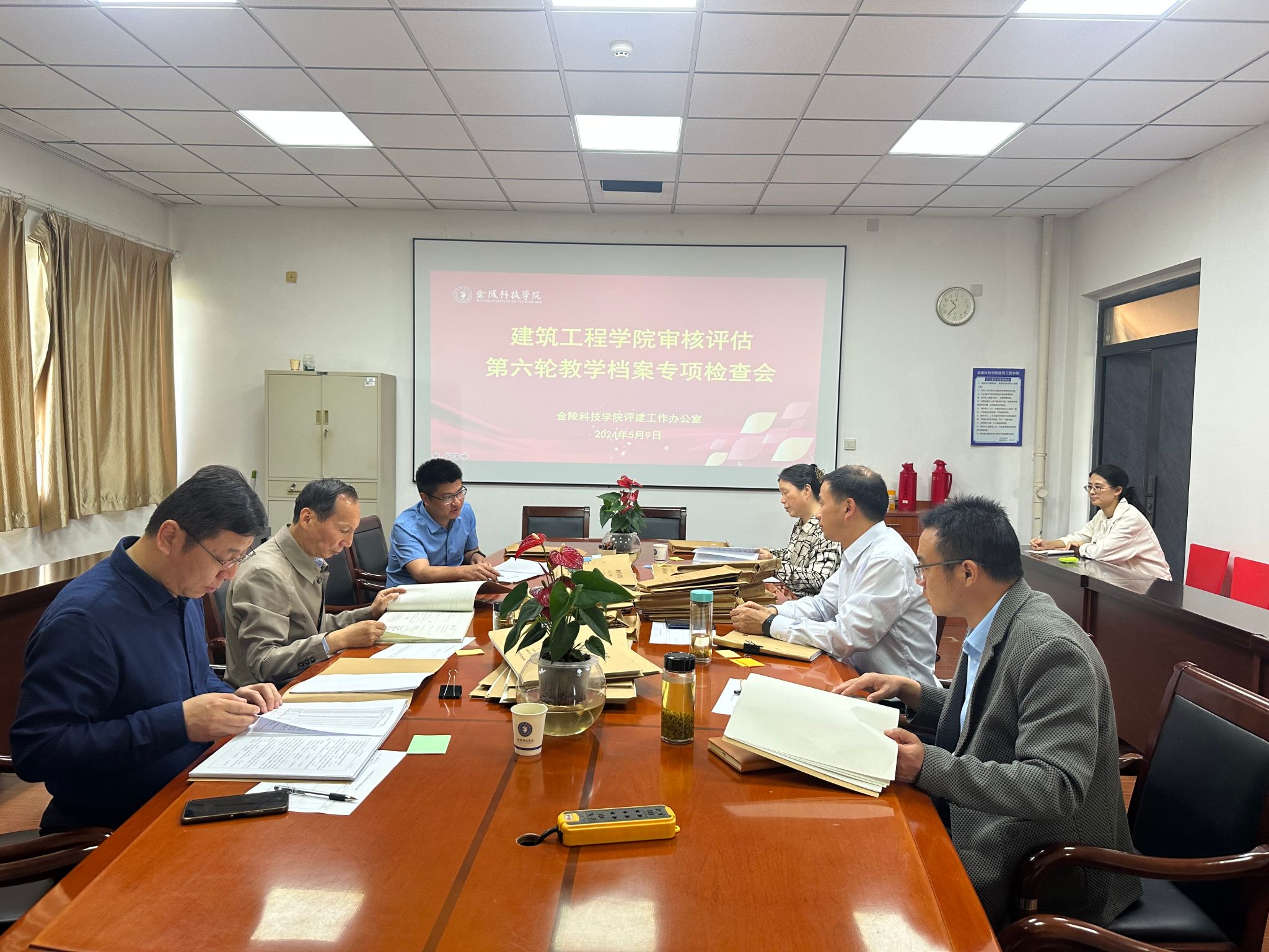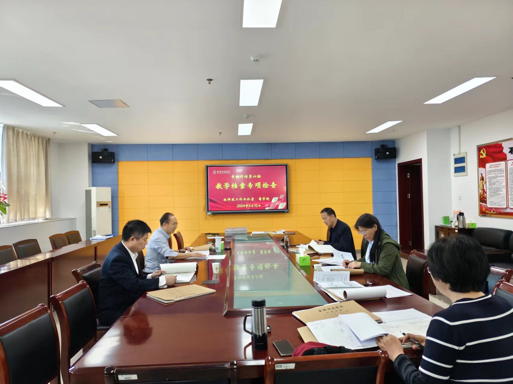 5月9日至10日,学校评建工作办公室组织校内评估专家,分五个大组对马克思主义学院、商学院等19个二级学院的教学档案进行第六轮专项检查。副校长顾晓燕参加专项检查会并讲话。