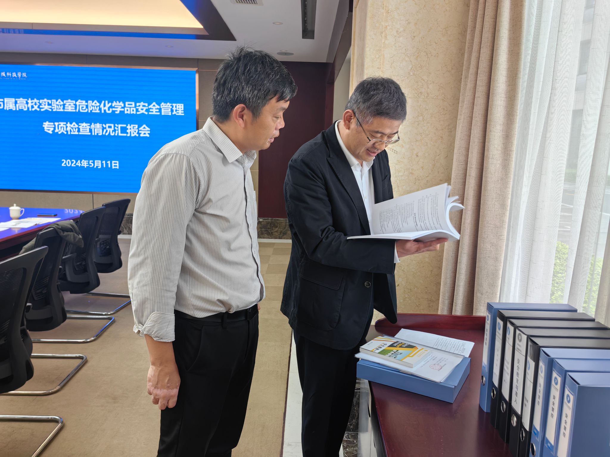 随后,检查组一行深入到材料工程学院危险化学品暂存点、危险废弃物临时存放柜、涉危实验室展开细致检查,重点对实验室危险化学品安全、基础设施建设等方面进行检查,并认真查阅了校院两级实验室危险化学品安全管理相关台账。