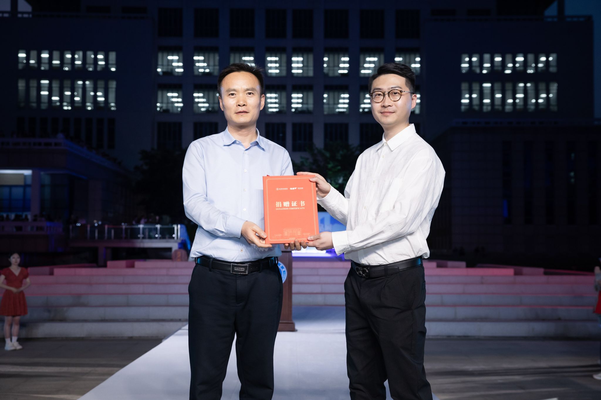 王延光为校友骆琛颁发捐赠证书