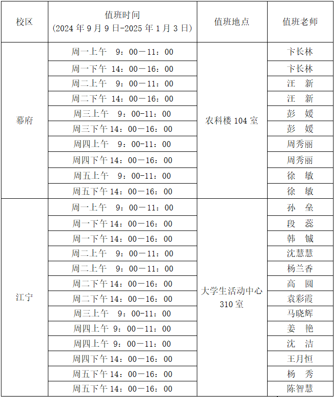 备注:大学生心理健康教育中心专职教师,周一至周五工作时间均可预约咨询。