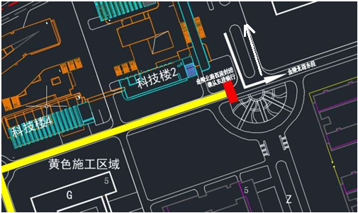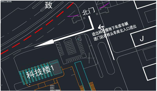 注意:北门进出车辆请从金陵北路东段通行(图一白色箭头进出方向);由金陵西路(工科楼东侧路段)前往科技楼车辆,请从玉兰路绕行(图二白色箭头为绕行方向);所有进入科技楼的机动车请从科技楼北侧路口进入(图三白色箭头为进入方向)。 保卫部(处) 基建处 2018年8月27日