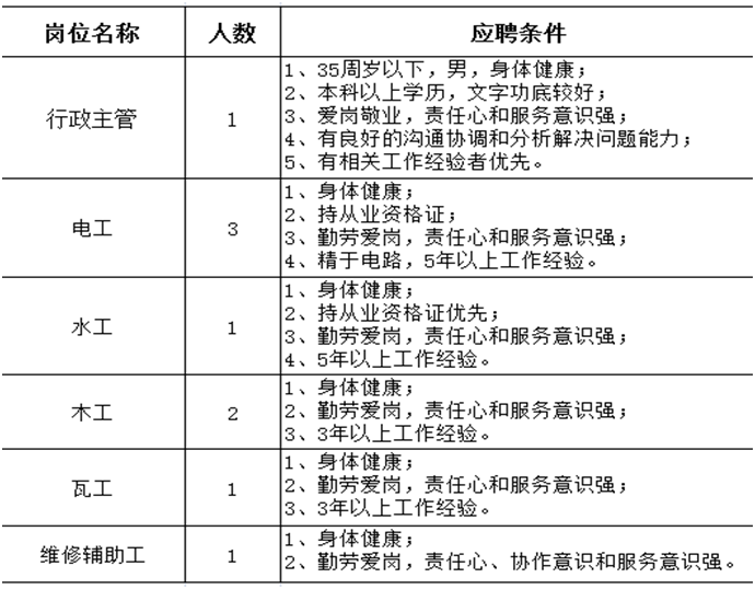 根据工作需要,维修中心现面向社会公开招聘员工,具体事宜如下:
