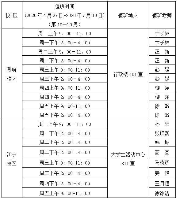 3.心理咨询值班安排(见下表)