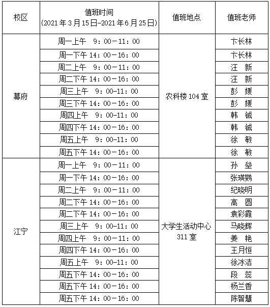 1.心理咨询预约电话:86188711;江宁校区预约地址:大学生活动中心310办公室(心理健康教育中心)。