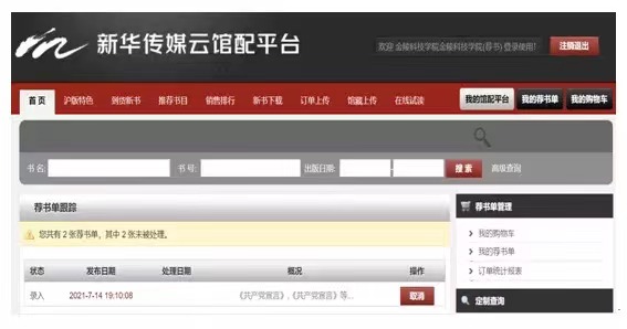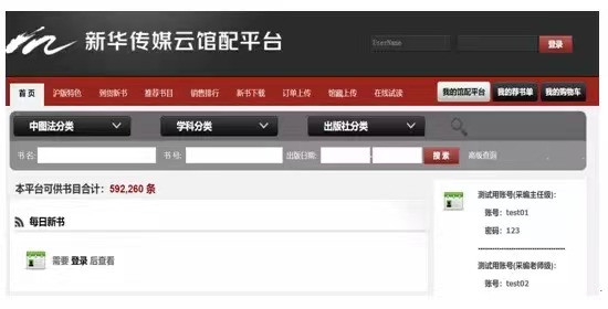 1) 点击活动平台链接,进入新华传媒云馆配平台首页