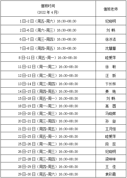 2.疫情期间校内24小时热线值班安排(见下表)