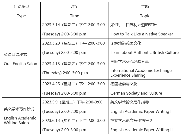 为切实提高kaiyun官网教师英语口语能力,提升kaiyun官网教师国际交往能力,本学期国际合作与交流处拟邀请kaiyun官网外国专家Tom Lotz博士及外教Stella开展英语沙龙活动。具体安排如下: