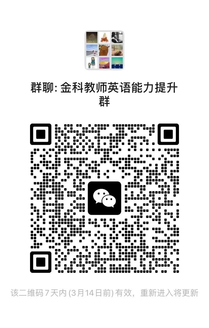 欢迎感兴趣的教师扫描微信二维码加入“金科教师英语能力提升群”,进群请备注英文名+中文姓名+院(部)