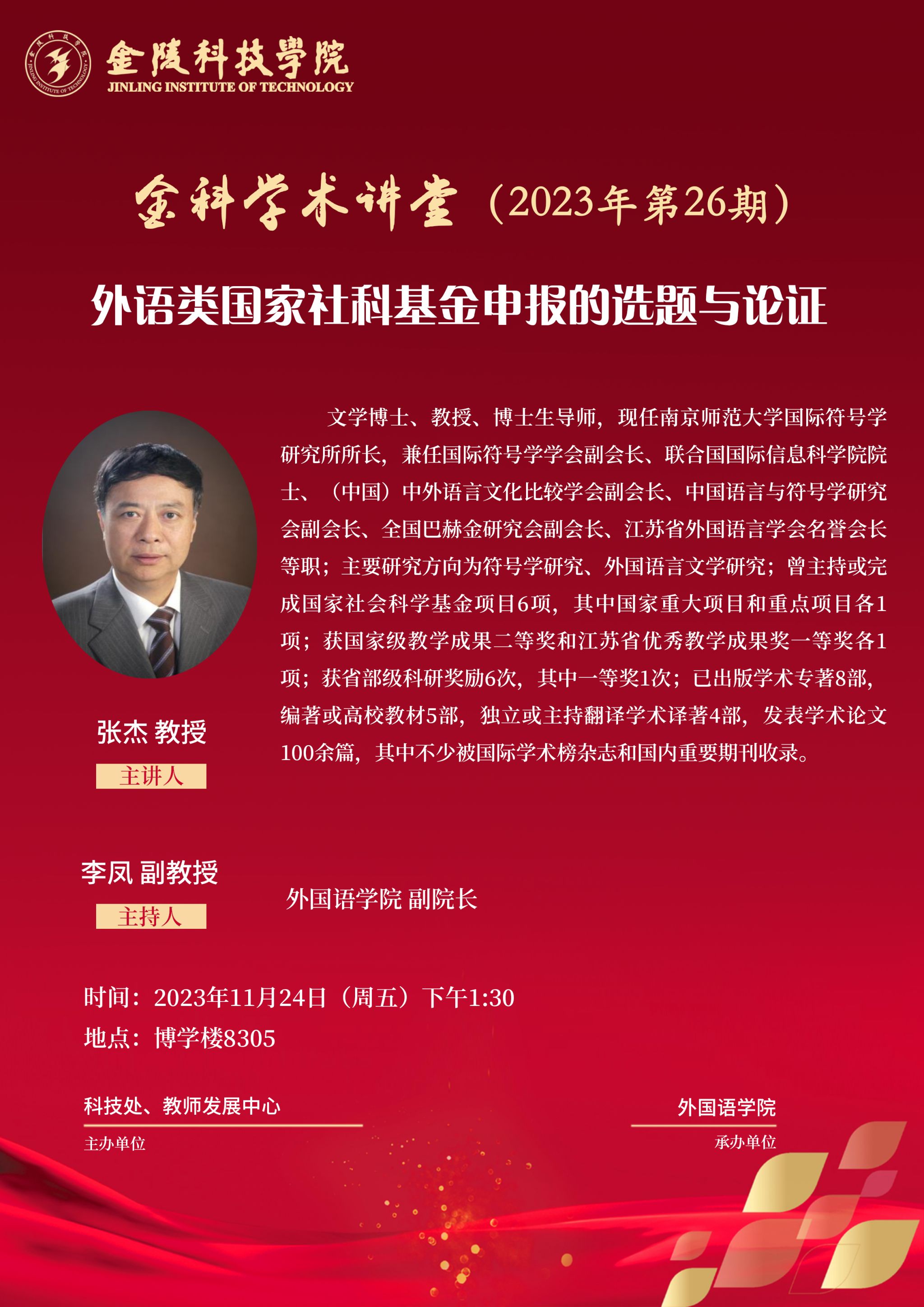 关于举办“金科学术讲堂——外语类国家社科基金申报的选题与论证”学术报告的通知