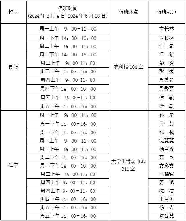 1.心理咨询预约电话:86188711;江宁校区预约地址:大学生活动中心310办公室(心理健康教育中心)。