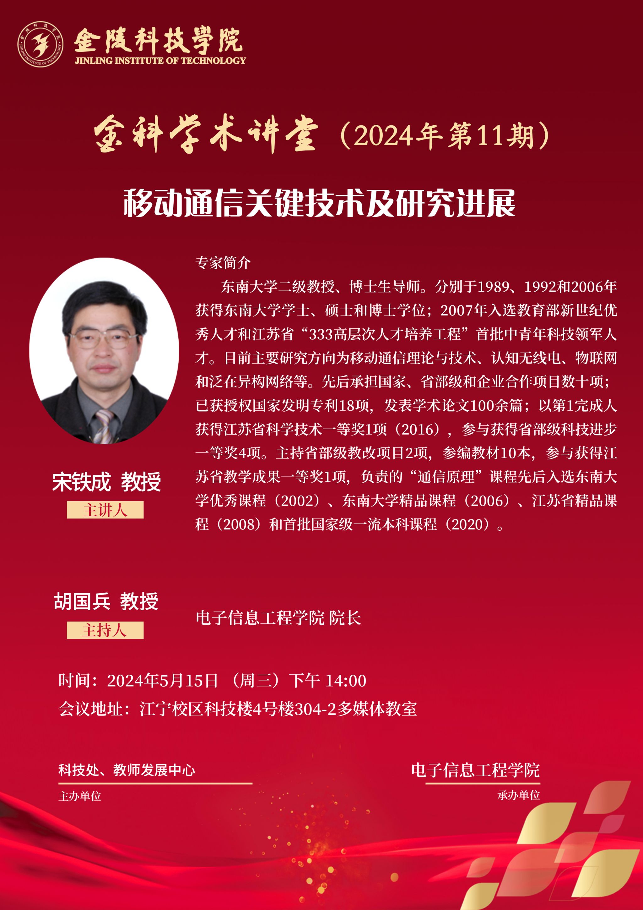 关于举办线下“金科学术讲堂——移动通信关键技术及研究进展”学术报告的通知