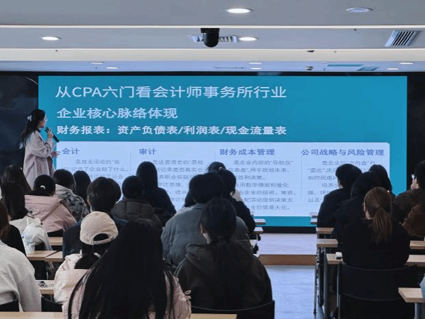在座谈会上,学管刘老师以一场专业而富有深度的分享,为在场学生提供了宝贵的CPA学习指导。她系统阐述了CPA备考策略与职业发展路径,并表示大学阶段是专业能力积累的关键时期,鼓励学生们将大学时光转化为积累期,通过积极考取CPA等权威职业资格认证和专业实习,以提升综合竞争力,为未来进入行业标杆机构奠定坚实基础。