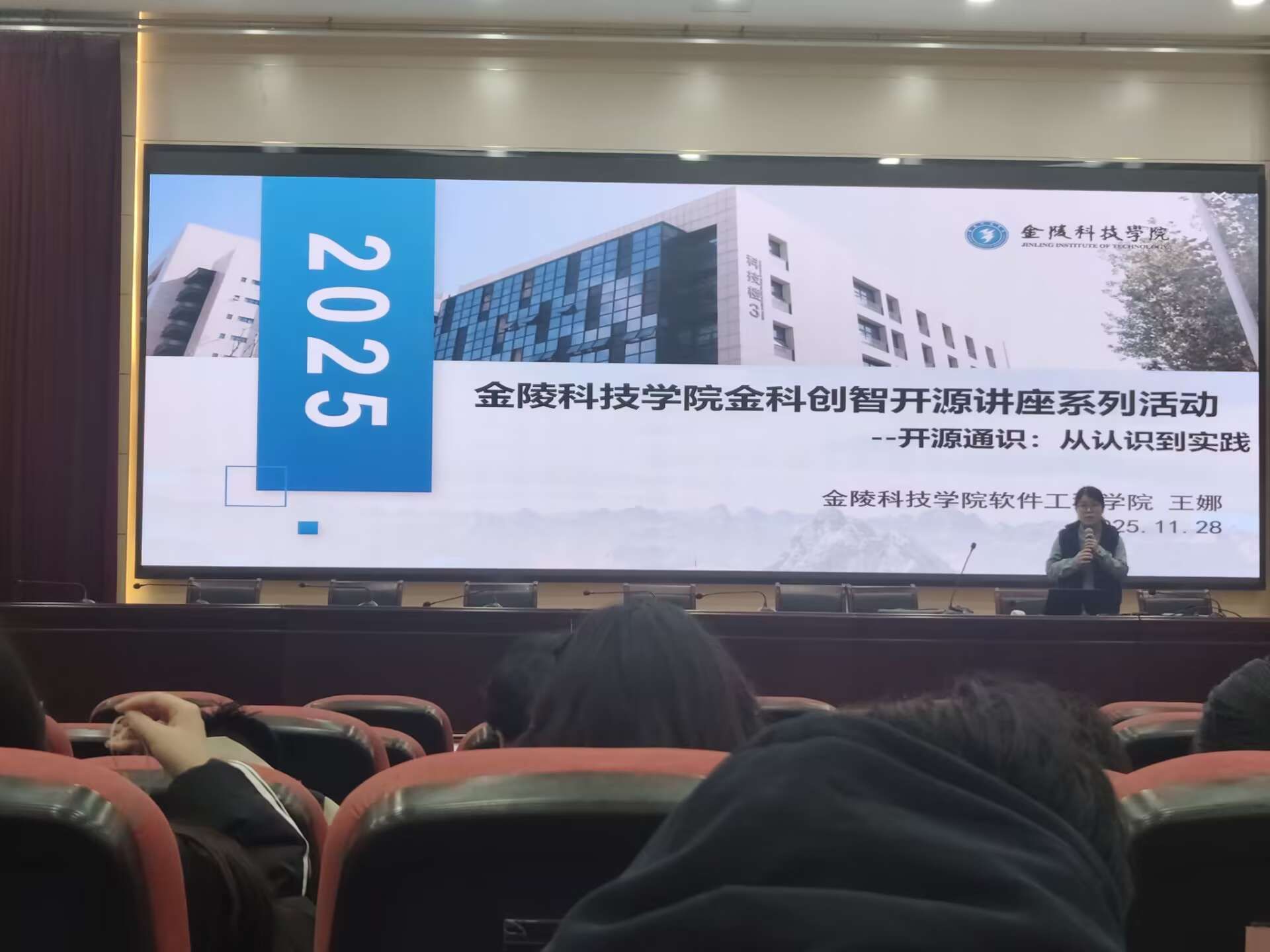 徐秀云老师清晰拆解开源核心知识,界定开源本质是开放源代码供他人自由查看、使用、修改与分发,且需遵循特定开源许可证规范。她以Linux内核为案例,展现开源生态进化:1991年初版由Linus Torvalds个人开发,仅1万行代码;2025年6.14版本已达4000万行代码,拥有2.3万全球贡献者,直观呈现开源从个人创作到全球协同的生态价值。她还梳理了1960-1980年代初开源“史前时代”,回顾MIT、贝尔实验室早期软件共享氛围,以及Unix闭源与自由软件运动的行业背景,帮助师生构建完整知识体系。针对参与价值与入门路径,她强调开源能转化课本知识、提升求职竞争力、培养协作思维,并分享修改文档错别字、修复简单bug等新手友好型参与方式,搭配“Good First Issues”网站使用技巧,降低入门门槛。王娜老师明确系列活动核心定位,称其是学院深化产教融合的重要举措,旨在联动行业顶尖机构,弥补课堂教学与产业实践的衔接空白。首期聚焦“认知与实践”帮助学生建立基础认知,后续将围绕开源生态深化、项目实战进阶等主题展开。她提到,活动策划始终以学生需求为核心,主题筛选、嘉宾邀请均经多轮调研,确保内容兼具专业性与实用性。