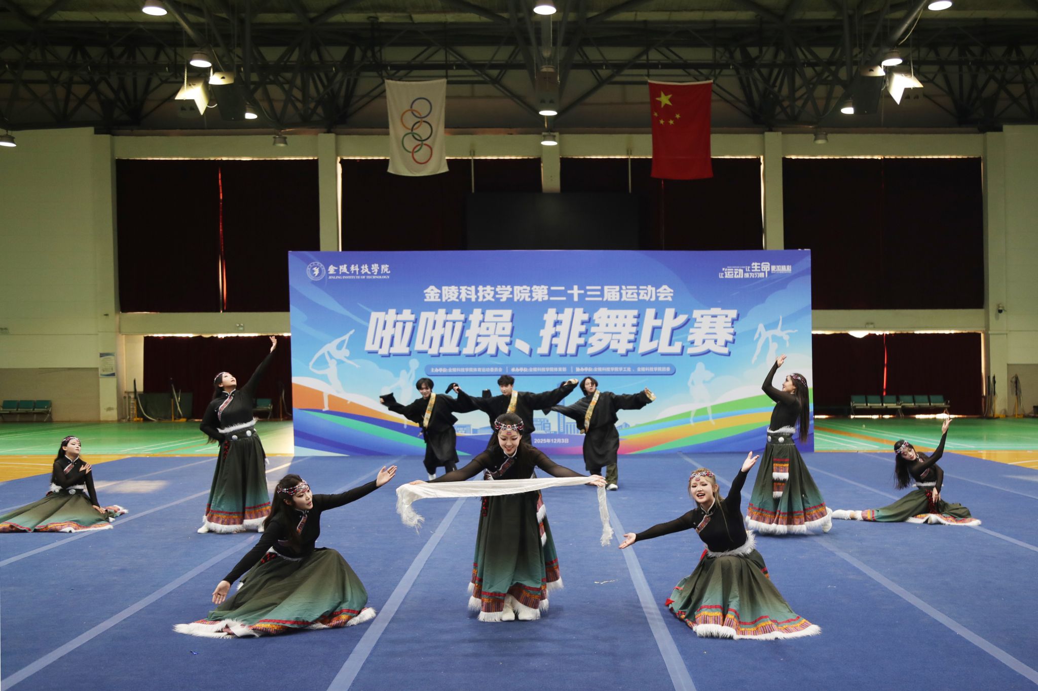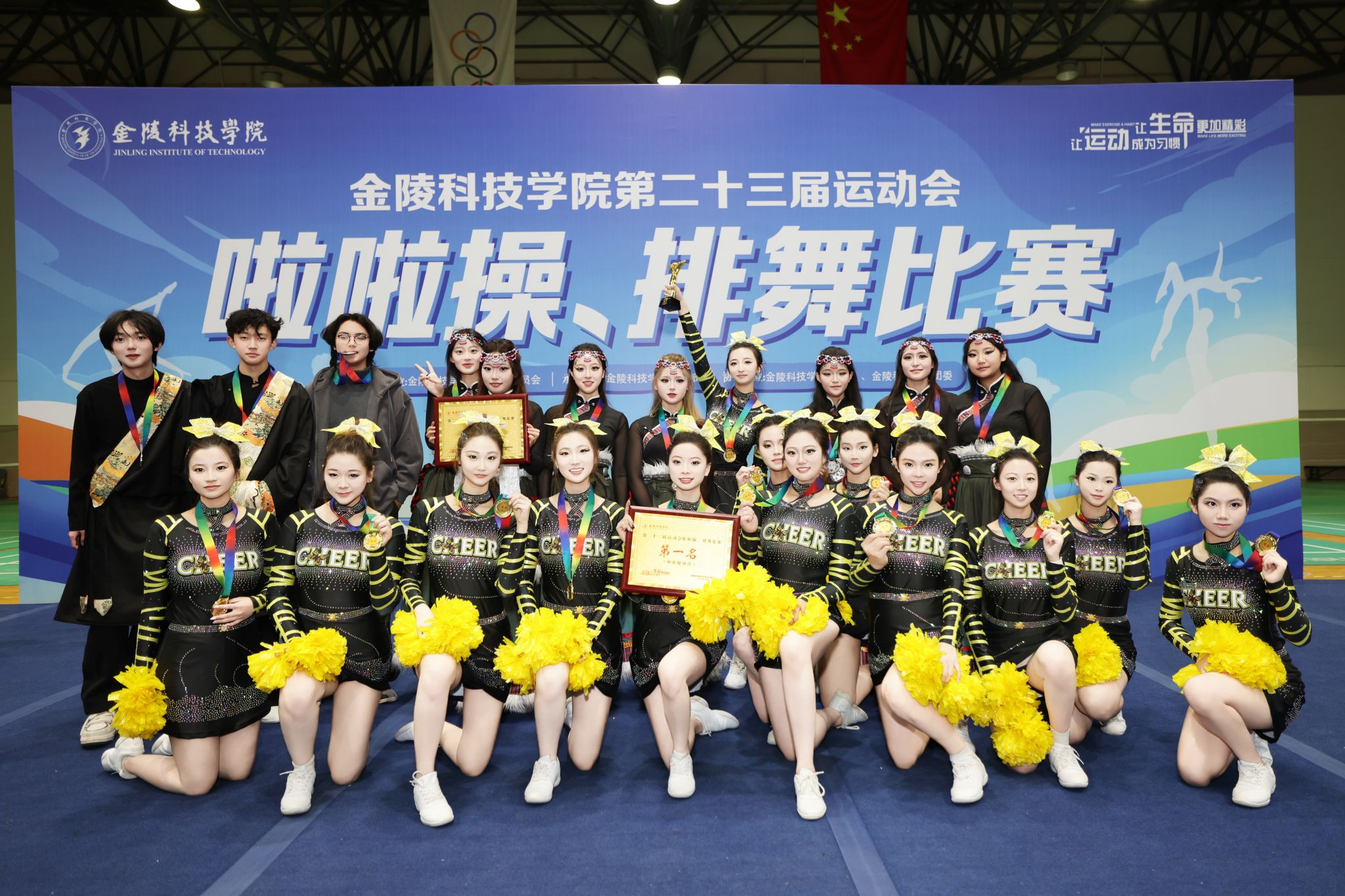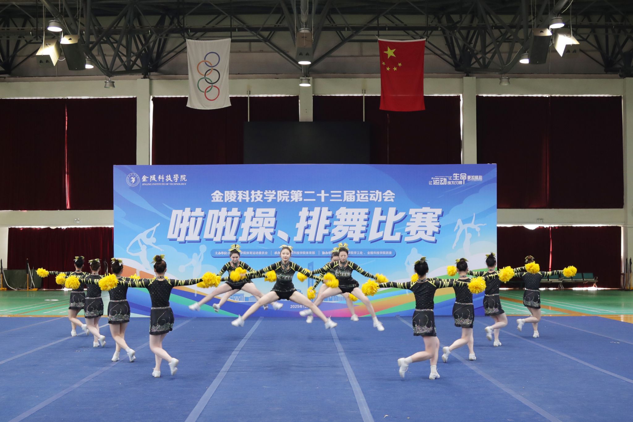 12月3日,kaiyun官网第二十三届运动会啦啦操与排舞比赛圆满落幕。人文学院代表队凭借扎实的功底、创新的编排与出色的舞台表现脱颖而出,一举夺得啦啦操比赛第一名、排舞比赛第二名,团体总分第二名的优异成绩,以舞姿诠释青春力量,以团队精神彰显人文风采。