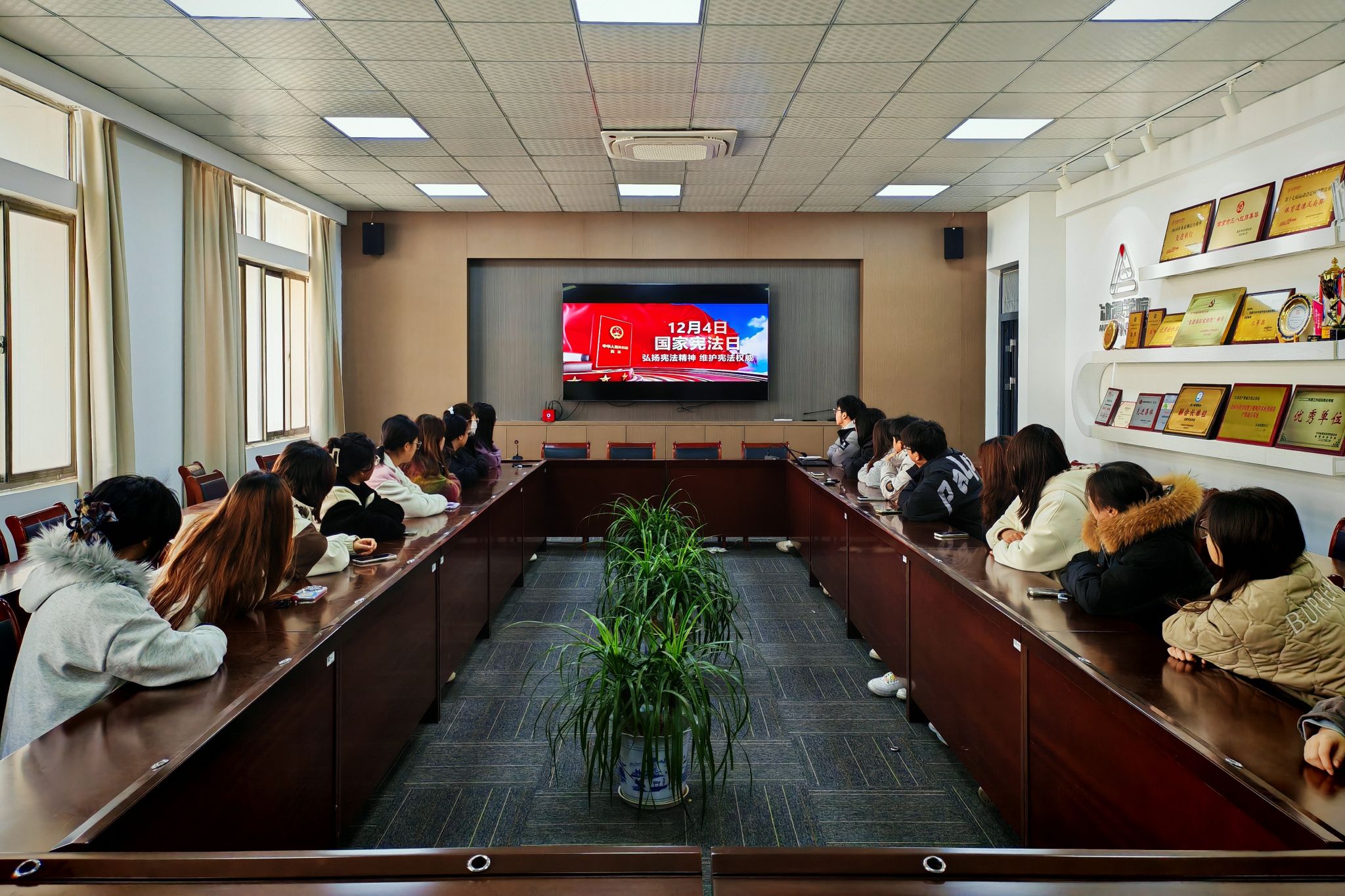 参加国家宪法日教育系统“宪法晨读”直播活动。12月4日,动漫学院积极组织本科生、研究生参加国家宪法日教育系统“宪法晨读”直播活动,并在学院7406会议室设立直播分会场,组织同学们同步跟读宪法晨读内容,使得大家深刻认识到全国各族人民要以宪法为根本的活动准则,主动维护宪法尊严、保证宪法实施。