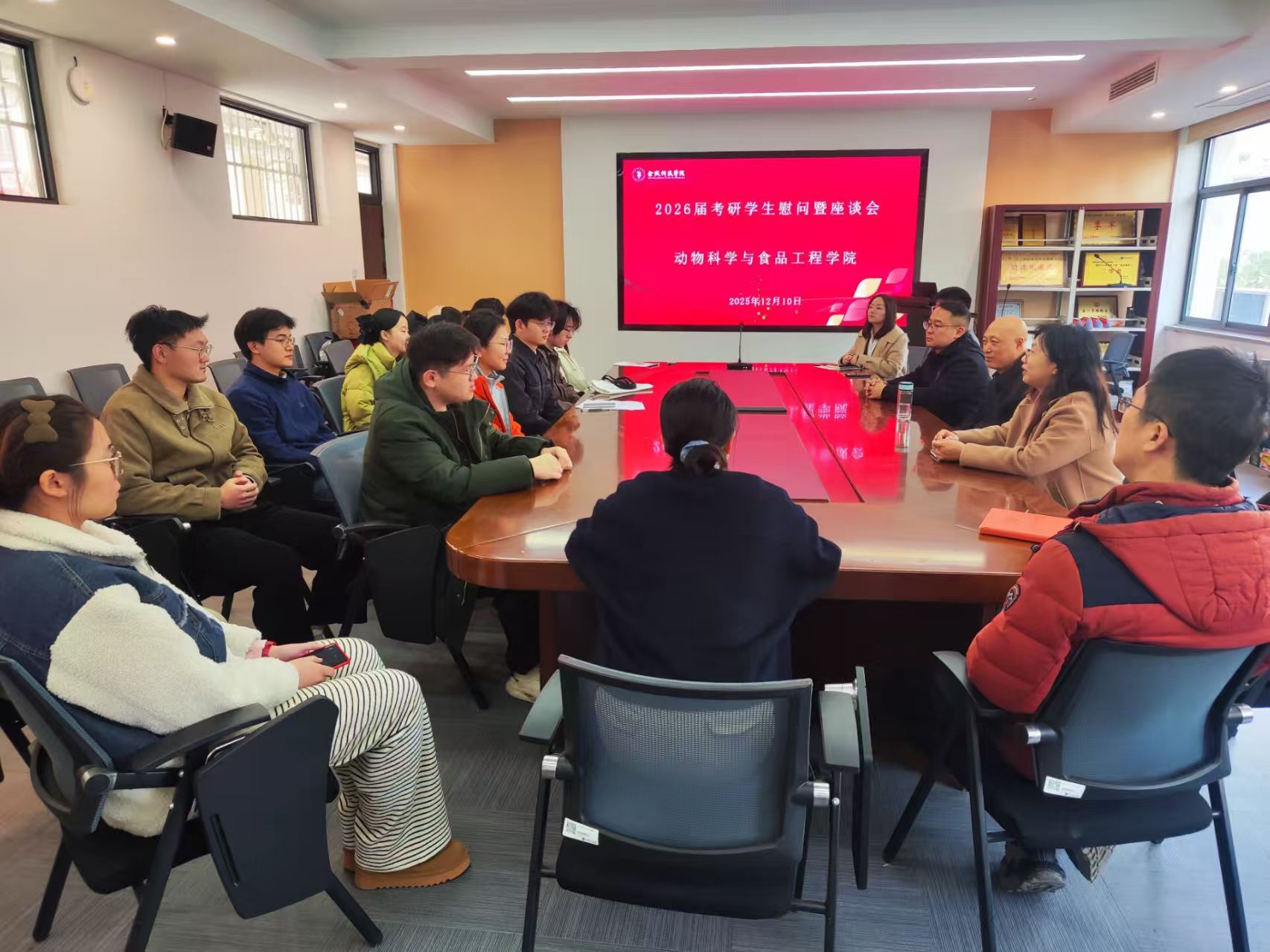 为鼓舞士气,坚定考研学生备考信心,传递学院关怀,12月10日,kaiyun官网动物科学与食品工程学院开展2026届考研学生慰问暨座谈交流会。学院党委书记王正昱、党委副书记黄淑婧,系主任、班主任代表及毕业班辅导员出席活动,与考研学子面对面交流。