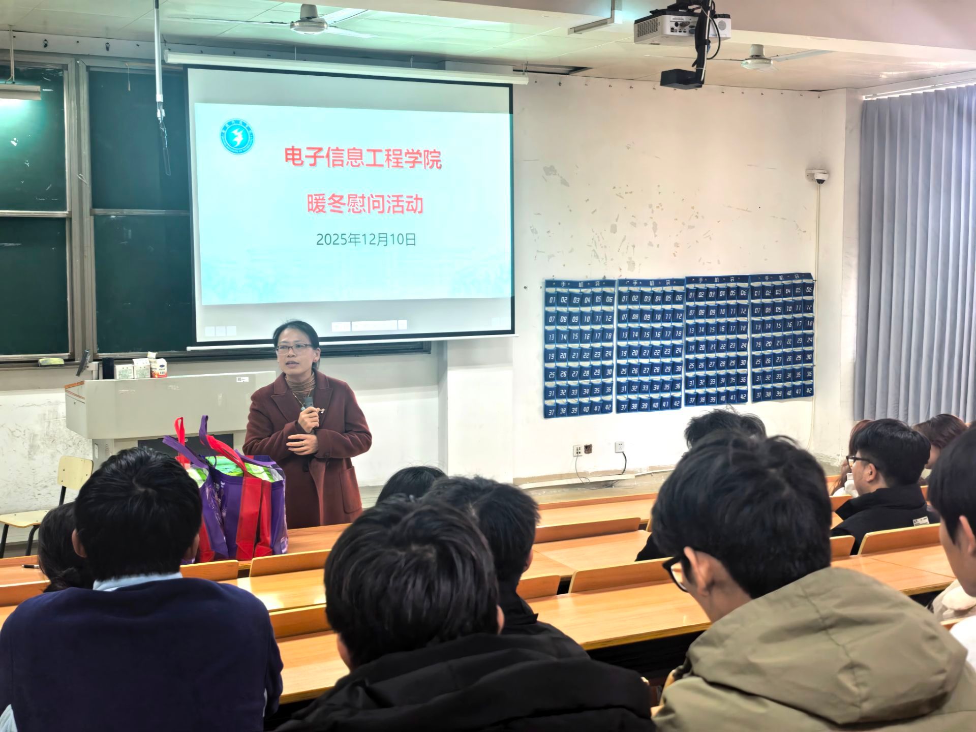 为深入贯彻落实资助育人工作要求,切实将关怀与温暖送到每一位受资助学生心中,12月10日,电子信息工程学院在2302开展暖冬慰问活动。学院党委书记徐志国、党委副书记陈智慧、辅导员郭晓和学院全体受资助学生参与了活动。
