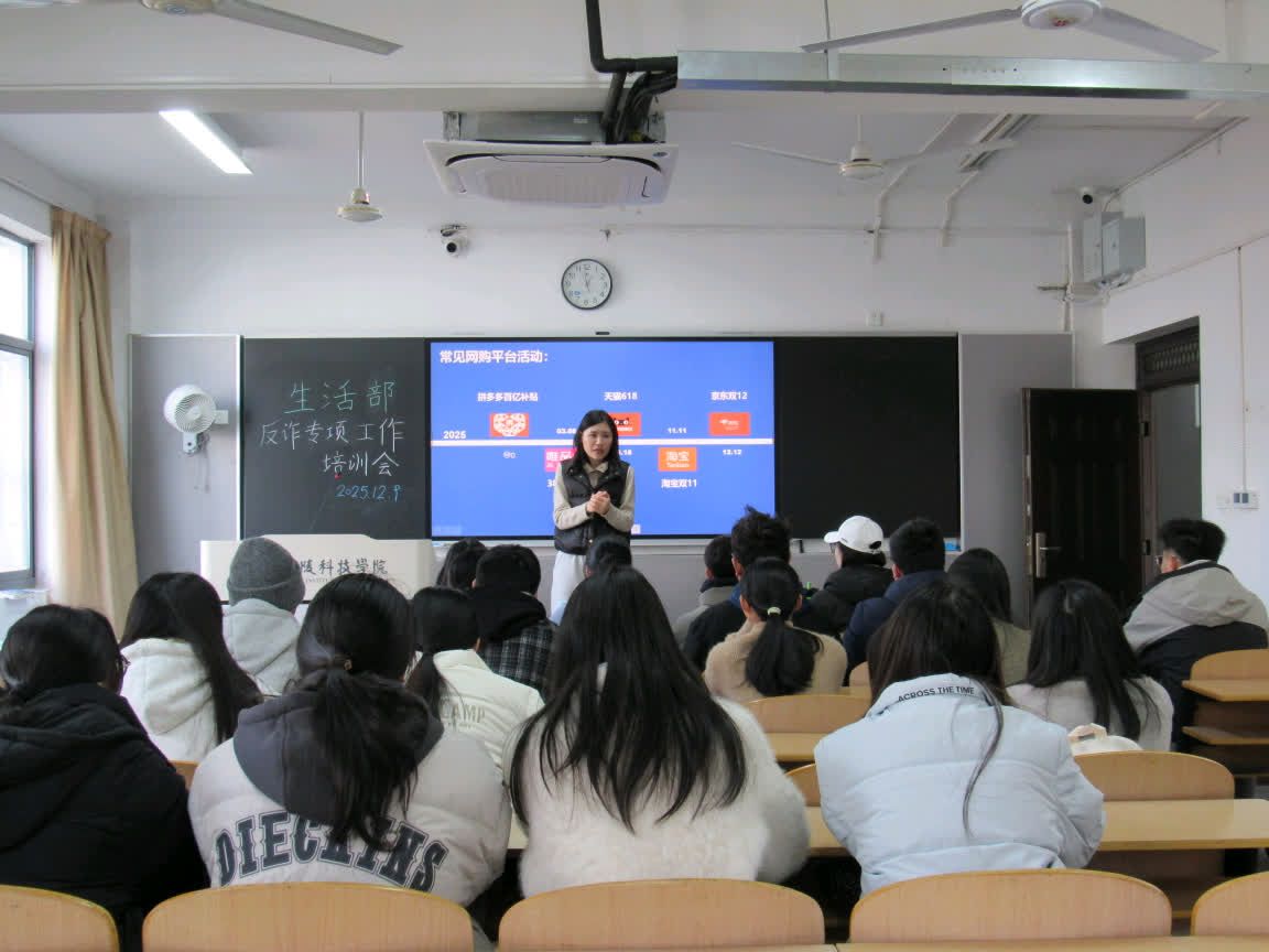 为切实提升学生干部的反诈防骗意识与自我保护能力,更好地开展反诈宣传教育,守护学生财产安全。12月9日中午,人文学院在幕府校区教学楼202教室开展了防范电信网络诈骗专题培训活动。辅导员张琳老师通过案例解析、互动讨论等形式,为学生干部进行了一场干货满满的反诈“安全课”。