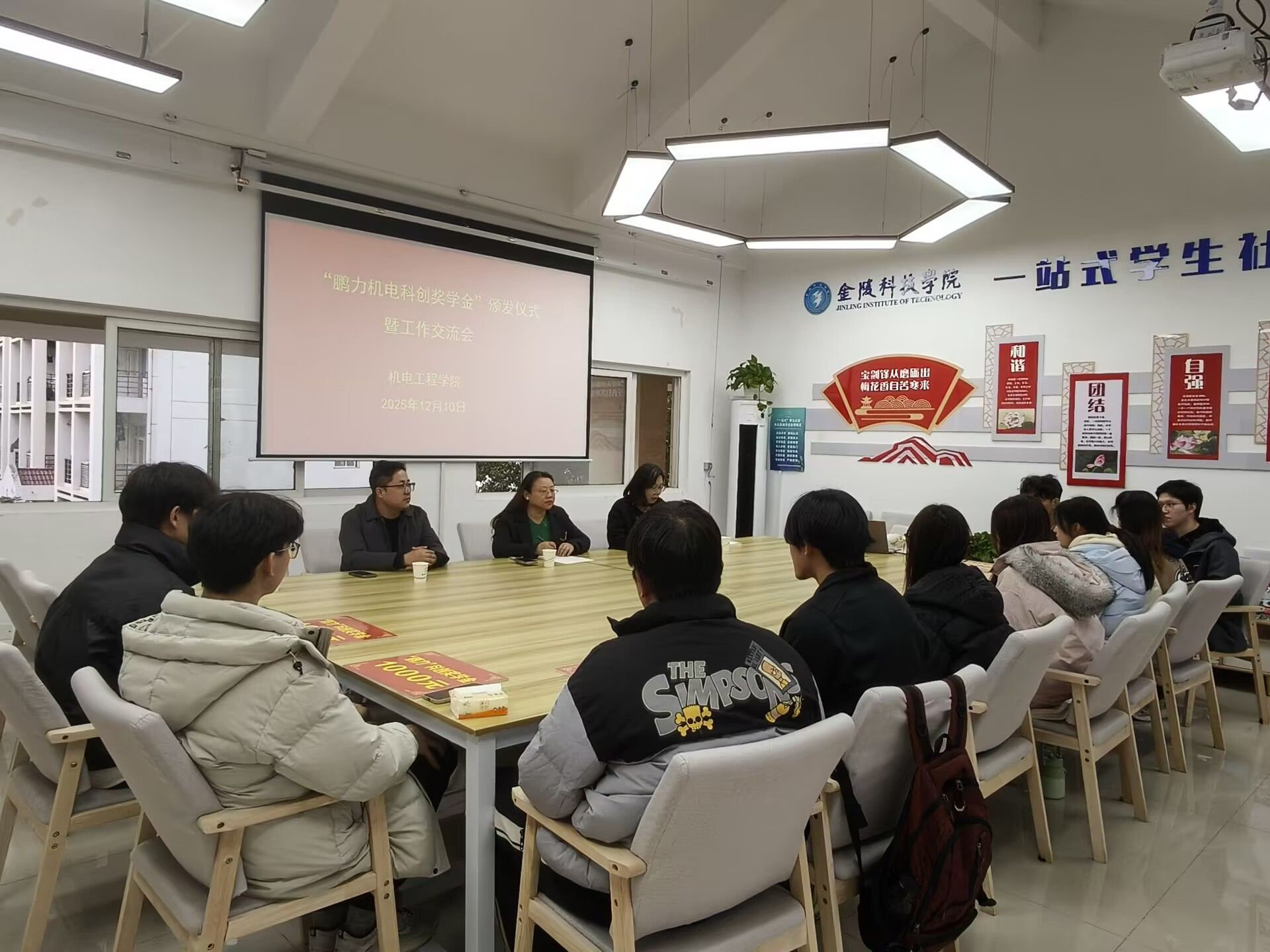 为深化校企协同育人,激励科创优秀学子,近日,机电工程学院在一站式社区举办“鹏力机电”科创奖学金颁奖仪式暨工作座谈会。该奖学金由南京鹏力机电科技有限公司捐赠设立,奖励学院2025年度科创成绩突出的“十佳”科创之星。院党委副书记张蓉、学工办副主任李梅、辅导员杜雨辰及全体获奖学生参加活动,活动由李梅主持。