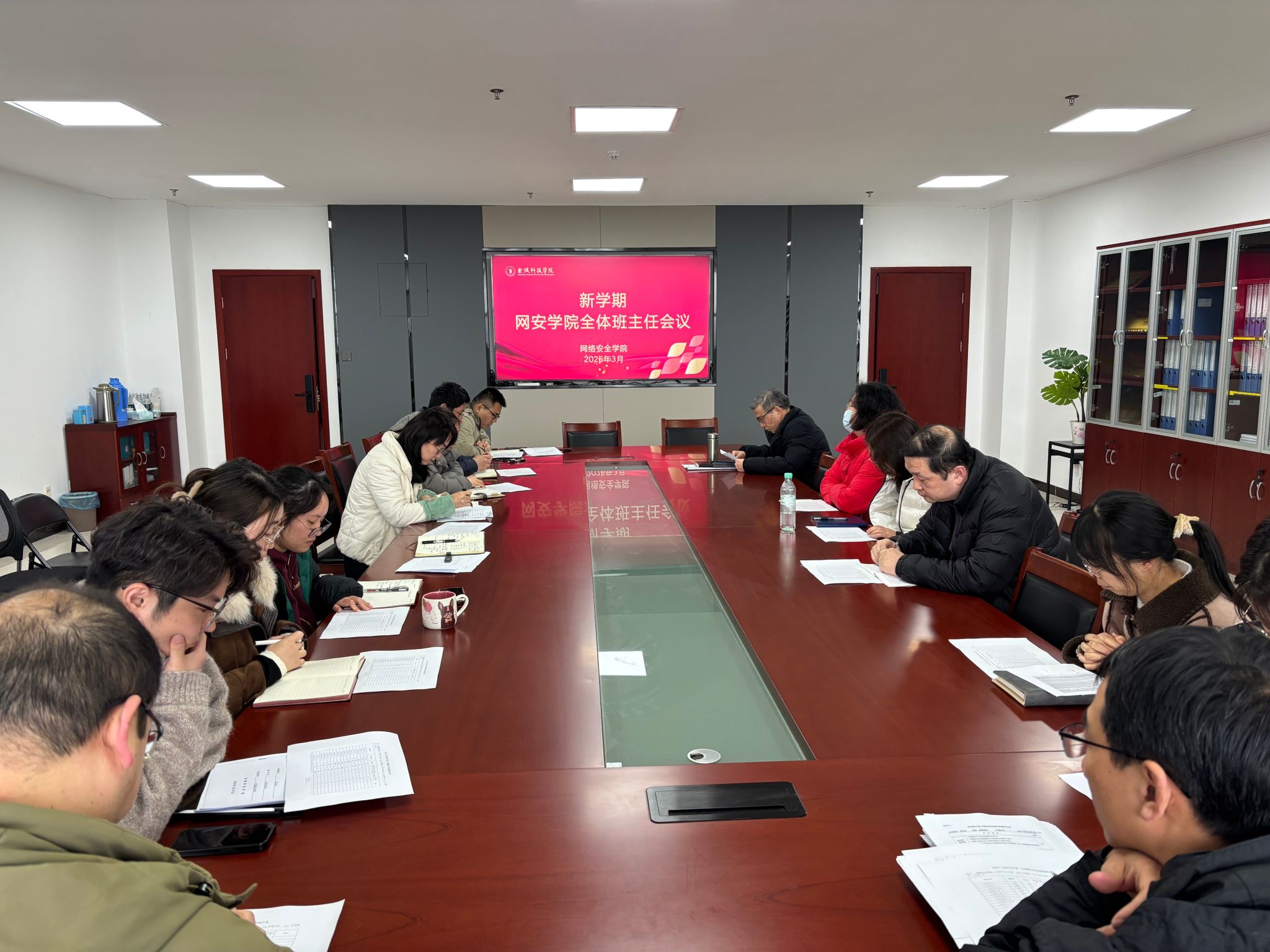 3月4日下午,网络安全学院在科技楼4-1218会议室召开新学期全体班主任会议,全面部署学生管理工作。学院党总支书记叶海青、全体辅导员及班主任参会,会议由学工办主任孙垒主持。