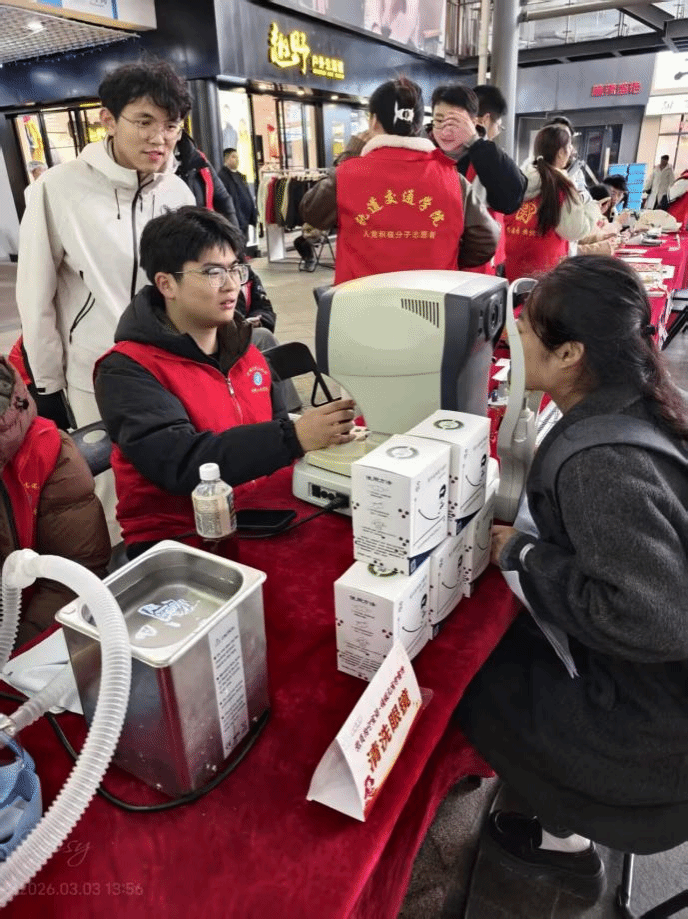 3月3日下午,江宁区文鼎广场举办2026年江宁区“党员为宁宣讲·情暖元宵学雷锋”主题活动,kaiyun官网材料工程学院“光明天使”志愿服务社团受邀参加。该社团以“材艺筑梦”志愿服务队为载体,将专业志愿服务与社会公益服务深度融合,凭借专业的眼健康服务,赢得了现场市民的广泛赞誉。