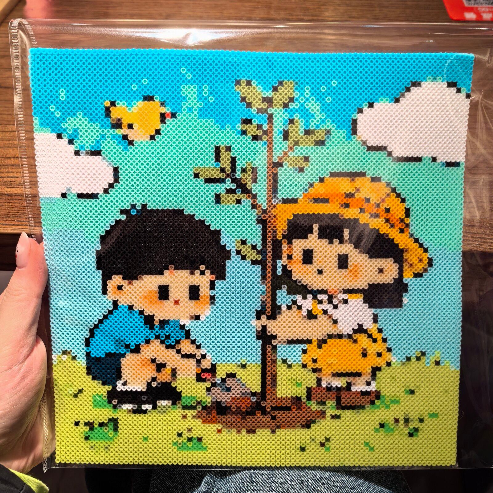 本次活动创新融合环保理念与潮流拼豆艺术,打破传统植树形式,为学生搭建多元化环保表达平台。活动中,同学们踊跃创作,充分发挥想象力与动手能力,以彩色拼豆为媒介,将对绿色的热爱融入作品,一颗颗拼豆拼接成草木新芽、绿水青山等鲜活造型,承载着大家对美好生态的向往。活动既调动了学生创作热情,也让大家在实践中深化对植树节的理解,树立“爱绿、护绿、植绿”意识。