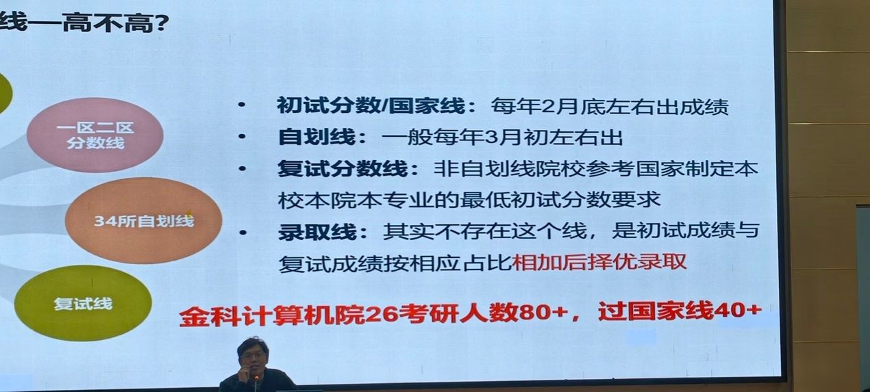 讲座上,张星星紧扣当前就业形势与考研热点,围绕五大核心板块,为在场学子进行了深入浅出的剖析。张星星直击痛点,明确动机:为什么要考研?引导同学们深入思考考研的内在驱动力;随后系统梳理了考研的全流程,从报名、初试到复试、录取,逐一解析关键时间节点;针对计算机专业的特殊性,重点剖析了当前计算机考研的最大变数——“408统考”;紧接着,张老师结合大量真实案例,为同学们传授了科学择校的方法论;最后,张老师为立志“一战上岸”的同学们提供了宝贵的阶段性复习建议。