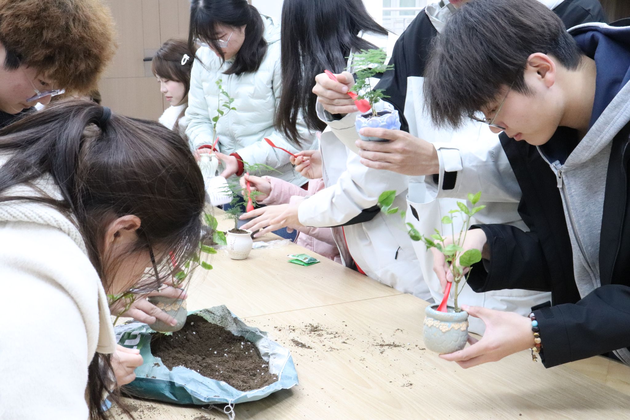 本期团辅设置“趣味破冰”“植物盲盒介绍”“积极品格探索”和“我的心灵花园”等环节,通过游戏互动、自我剖析、小组交流、心愿寄语等形式,引导同学们打破陌生隔阂、向内探索自我,在轻松氛围中解锁自身的“品格优势”,涵养积极心理品质。在“我的心灵花园”环节,同学们亲手种植生机勃勃的绿植,在心愿卡上认真写下希望培养的积极心理品质,将植物带回,象征着将积极心理品质种进心里,让成长力量伴随大学生活持续生根发芽。