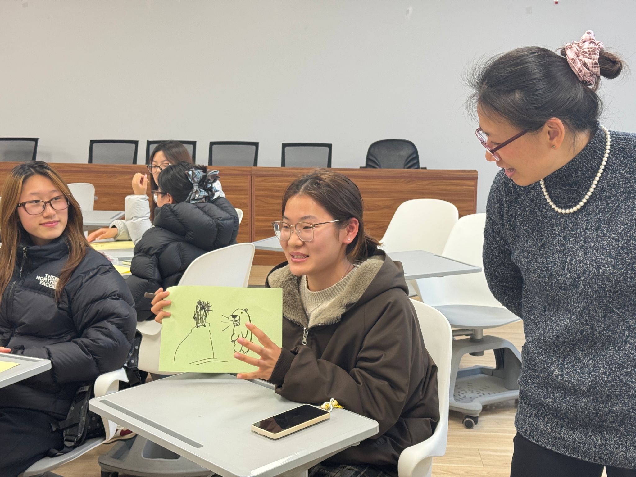 活动伊始,陈智慧引导同学们按圆形、三角形、不规则图形分组围坐,以姓名接龙的趣味形式快速破冰暖场,在轻松互动中拉近彼此距离,营造开放包容的团体氛围。随后,同学们通过绘制动物自画像并逐一分享创作理念,以独特视角探索自身性格特质与内在优势,在表达与倾听中深度认识自我、接纳自我。活动中,大家还一同提笔写下了想对大四的自己说的话,将当下的期许、目标与力量注入文字,为未来成长蓄力赋能,明晰生涯发展方向。