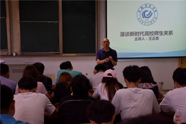 王书记针对如何处理好师生关系做了阐述。他博引古今分析社会现象,指出要建立和谐亲密的师生关系,首先师生双方要做到正确对待师生平等,真正实现师生平等,其次学生要做到主动和老师沟通,反映学习生活状态,师生之间双向互动,建立良好和谐的师生关系。