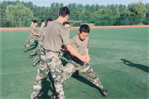 本学期的每周三、周五早上六点半,一群身穿迷彩作训服的青年人准时在江宁校区南区运动场集合,并按照部队的要求开展集体军事技能训练,他们就是来自商学院等各兄弟学院的退役复学学生们。在跑步训练中,他们队形整齐、步伐有力;在擒敌拳练习中,他们稳扎稳打、招招制敌。虽然之前服役于祖国不同地域和军种,坚负过不同岗位和使命,但军旅生涯锤炼了每位退役学生的意志品格,军人气质和优良传统成为他们共同的特点。操场上回荡着嘹亮的口号声“一、二、三、四,一二三四”,处处展现着退役军人朝气蓬勃、奋发进取的精神风貌,引发了晨读、晨练同学们的关注和赞许。