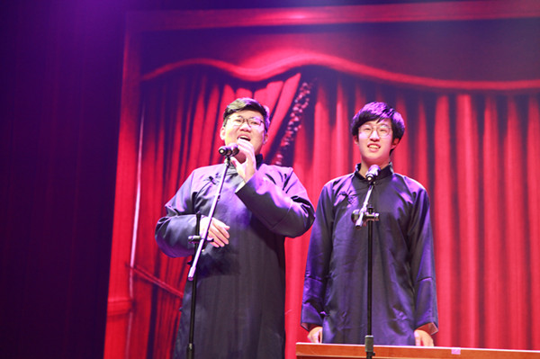 本次欢送会分为五个篇章,歌曲,舞蹈,乐器演奏,相声表演,诗歌朗诵等,丰富多彩,美不胜收。刚开场,2017级柴锦文同学以一首《有何不可》表达了对学长学姐的诚挚祝愿。现场气氛热烈,5名外籍教师深受感染,即兴上台表演并合唱《We are the champions》,表达了对2015级学生顺利完成中外合作办学第一阶段学习任务,即将接受跨境教育学习的祝贺。随后一七舞社的学弟学妹们以酷炫的街舞将欢送会的氛围推向了高潮。