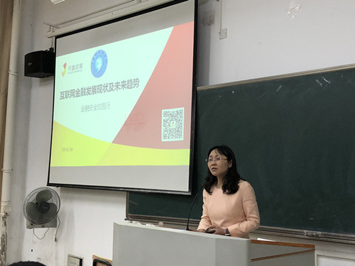 讲座中,开鑫金服业务经理刘蒙丹从校园贷的危害开讲,由此为引向大家介绍互联网金融对传统金融业的冲击,并结合多个著名互联网金融公司的发展,说明国家政策对互联网金融的扶持和管理,进而阐述当前互联网金融现形势与未来发展趋势。针对当前互联网金融安全问题众多现状,刘经理专门向师生展示了合法互联网金融公司产品的典型特征和内容,如何鉴别无证经营互联网金融公司及非法金融产品。结合经管类专业大学生发展需求,刘经理与同学们分享了自己在金融业从业所见所得和职业规划经验,分析未来金融市场格局和互联网金融业发展趋向,最后,开鑫金服工作人员还与同学们互动,就未来金融业就业形势等商科学生关心的话题与同学们开展交流。