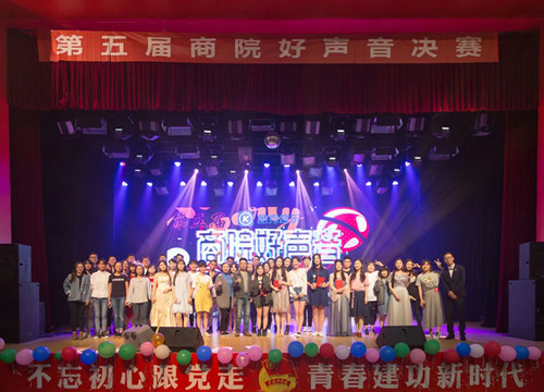 比赛现场座无虚席,掌声鸣动。在初赛和复赛中一路过关斩将的十位选手展示出较高水平,他们的倾情演唱赢得了在场观众的欢呼,观众们挥舞着手中的荧光棒为选手们呐喊助威。活动伊始,商学院舞蹈社团伴随着动感的音乐为同学们献上排练已久的舞蹈,胡彦斌、金岐玟、温岚等知名歌手通过VCR的方式表达了他们对本次活动的祝福。互动环节的猜歌名游戏及现场抽奖也为比赛增添了不少趣味性。比赛形式公平公正且富有创意,分为好友帮唱、车轮战pk、“唱我所想”三个环节,最终以评审团打分和观众投票相结合的方式决出胜负。经过一番激烈的角逐,王玥同学凭借其深厚的唱功和极具穿透力的嗓音摘下桂冠。赵希、崔梦宁同学分别获得亚军和季军,郑臣同学荣获“最具人气奖”,戴泽莹同学勇夺“最佳原创奖”,唐雪同学获得“最佳曲目奖”。在同学们热烈的掌声下,评委为获奖选手颁发奖状和奖杯,师生合影留念。