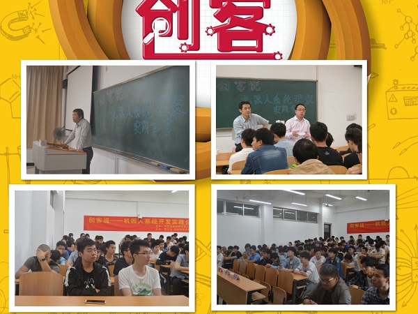 为鼓励学生开拓创新、培养学生的创新思维能力和实践能力,机电工程学院于4月21日上午10点在3202开展了机器人系统开发实践讲座。此次讲座特邀中国创客空间联盟理事长郑岩峰、南京百邻悦科技服务有限公司总经理吉星和机电工程学院实验中心主任周洪老师。我院近百名机器人爱好者聆听了本次“创客说”讲座。