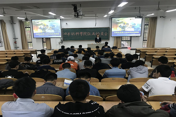 为积极响应国家征兵的号召,巩固国防建设,不断为军队注入新鲜血液,2018年4月10日晚18时,动科学院于图教楼B105举行征兵动员大会。17级辅导员吴旖旎老师主持本次大会,16、17级男生踊跃参加。