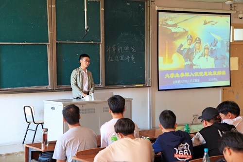 为深入贯彻落实习近平总书记关于加强和改进兵役工作重要指示精神,强化全民依法履行兵役义务观念,激发广大适龄青年参军入伍热情,2018年3月28日下午两点,计算机工程学院在1232教室举办征兵宣讲会,辅导员张晓雪老师为与会同学解读大学生入伍优惠政策。