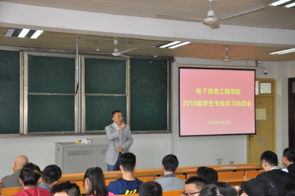 10月12日中午,电子信息工程学院在1232教室召开2015级学生专业实习动员会。院党总支副书记王正昱(主持工作)、副院长徐志国出席会议并发言,专业实习带队老师和15级学生参加会议。