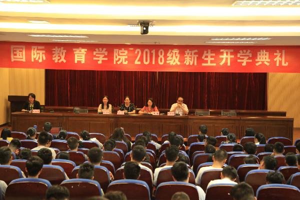 9月11日上午10点30分,国际教育学院在江宁校区图书馆第二报告厅举行了2018级新生开学典礼。国际教育学院党总支书记、院长黄晖教授、党总支部副书记郑庆秋、副院长沈奇副教授以及全体辅导员出席此次典礼,会议由副书记郑庆秋主持。