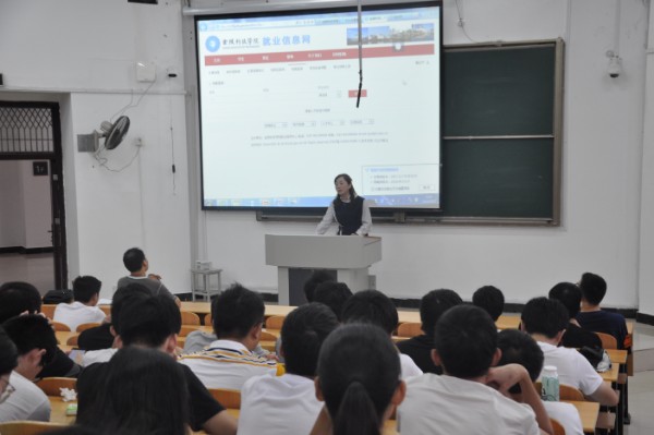 继毕业班简历指导工作后,为更好推进2019届毕业生就业指导工作,增强毕业生就业意识,掌握就业政策,电子信息工程学院于2018年9月17日上午在7100教室召开了2019届毕业生就业指导讲座。此次讲座由学院就业干事吴丹主讲,辅导员李岩、毕业班班主任以及全体毕业班学生参加。