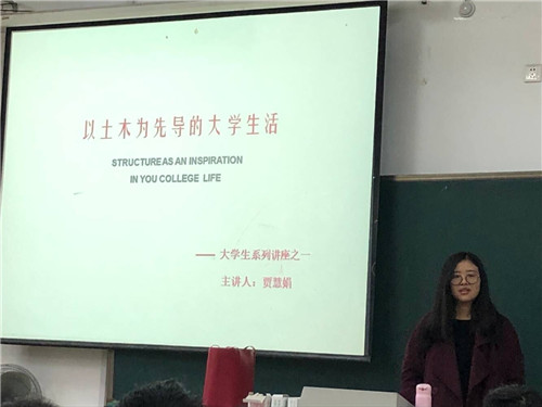 为了土木工程专业18级新生更好的适应和规划大学生活,建筑工程学院12月4日于5101教室举办《以土木为先导的大学生活》讲座,讲座由贾慧娟博士主讲。