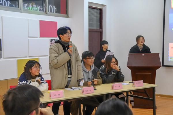 参加比赛的两支队伍分别来自18动画(单)班和18数字媒体艺术(1)班。在开篇立论中,正反方积极辩论和补充立论。盘问小结中,双方队员目标明确地发表了自己的观点,进行激烈的交锋。很快,比赛进入了自由辩论环节。场上辩手轮番上场,唇枪舌战令大家惊叹不已。在观众提问环节,在场的同学们都争先恐后地发问,而辩手们也都是沉着自信地予以应答。评委们认真地听着每位辩手的陈词、提问和回答,对辩手们的表现进行打分。在评委讲评环节,每位评委都很负责地指出了各个辩论队队员的优点和不足。在肯定比赛中的亮点之后,评委们针对其中出现的一些问题进行了详细讲解,并提出了很多有益的建议。最后,18数字媒体艺术(1)班获得了本次学院“唇枪舌战”辩论赛冠军。
