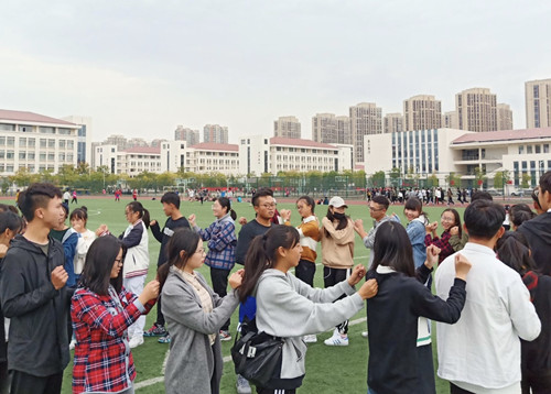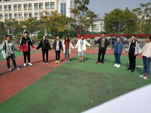本次活动主要通过做游戏的方式开展,寓教于乐,使各班同学们在轻松快乐的氛围中推进团队合作、增进集体意识。活动开始前主持人向同学们介绍游戏规则和注意事项,讲解其目的与意义。活动主要围绕六个部分展开——“滚雪球”、“轻柔体操”、“大风吹”、“情有千千结”、“一块五毛”、“同舟共济”。“滚雪球”项目让同学们熟悉了彼此的名字、家乡和喜好。在“轻柔体操”、“大风吹”活动中,所有同学手拉手围成一个大圈进行活动,放下忧虑,消除隔阂,释放自我。“一块五毛”和“同舟共济”两个环节充分考验了同学们的团队协作能力,每位同学都积极地融入到班集体中,共同完成任务。活动现场气氛热烈,同学们参与热情高。