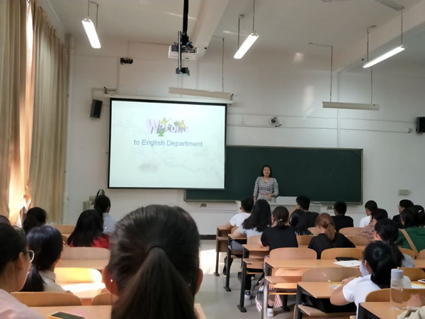9月29日上午九点,伴随着初秋清晨的微微凉爽,外国语学院张志刚副院长和英语教研室主任李凤老师在5109教室,给2018级新生们开展爱校教育和专业认知教育。