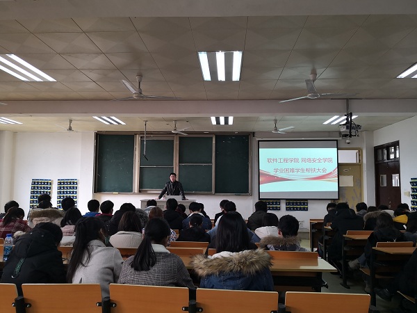 2018年2月24日下午3点,软件工程学院针对学业困难学生召开的帮扶会议专题讲座在1232教室举行。此次专题讲座由软件工程学院17级辅导员杜文娟老师主持,并邀请到了我院党委副书记徐斌对学生进行疑难解答。